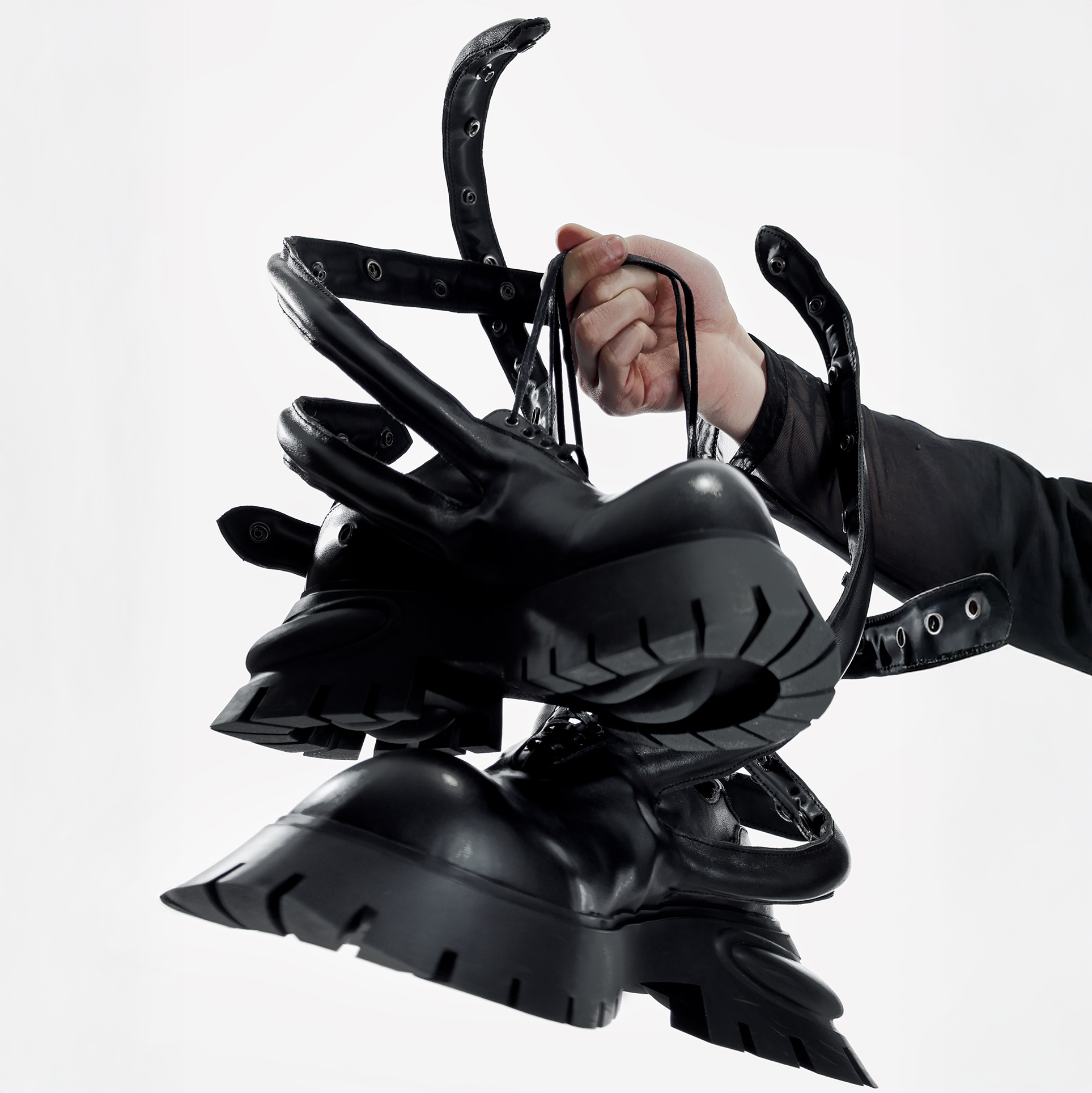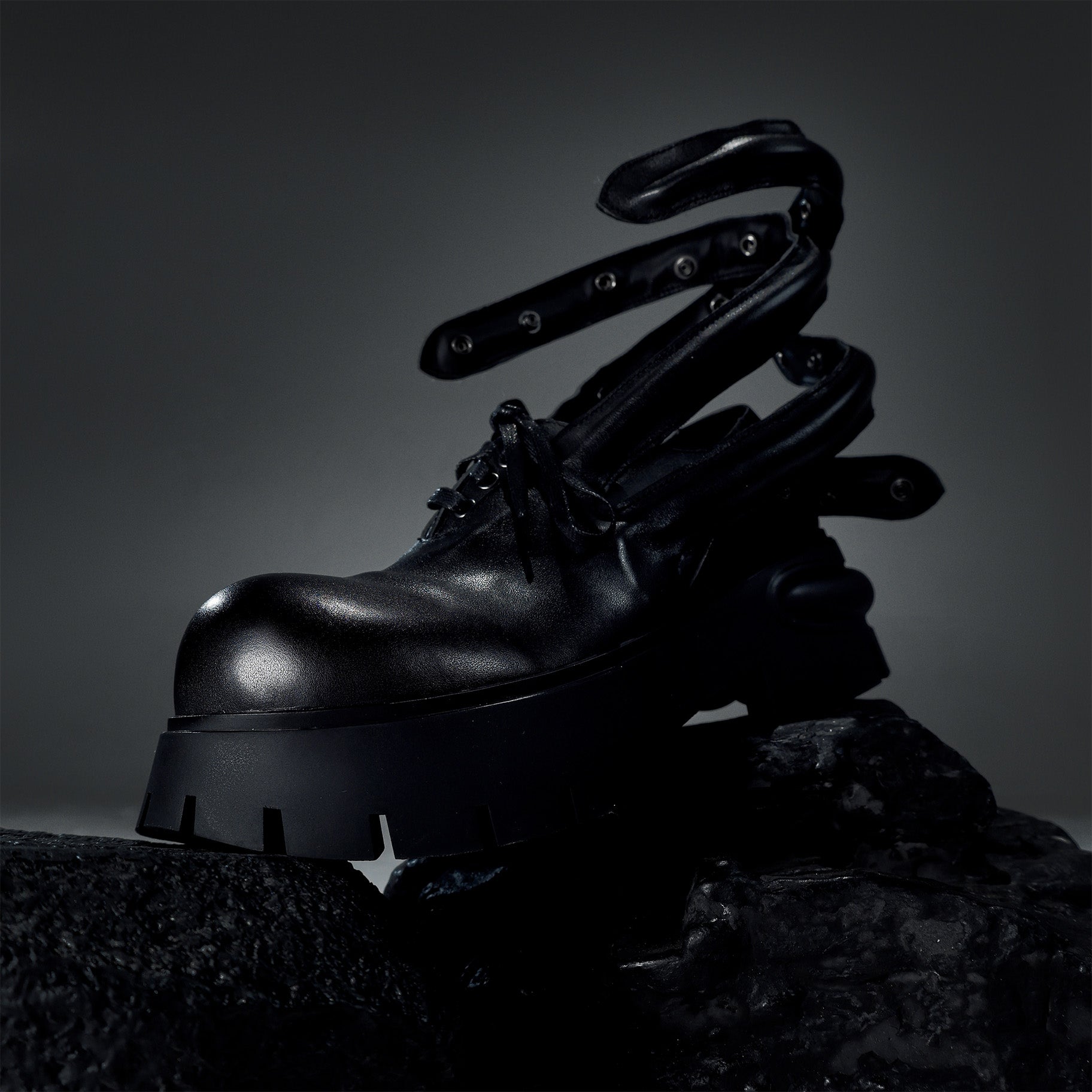 Inspired by the mystique of Cthulhu lore, Cthulhu Boot dons elongated leather tentacles, serving both as avant-garde adornment and a unique embrace for the ankle.